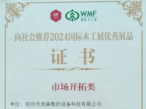 2024年9月11日-14日,CIFF上海WMF國際木工展在上海虹橋國家會展中心盛大開幕。濱州虎森數(shù)控設(shè)備科技有限公司出席參加了此次展會,憑借卓越的產(chǎn)品實力和創(chuàng)新精神,在眾多參展企業(yè)中脫穎而出,榮獲優(yōu)秀展品證書。